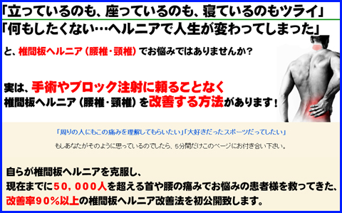 手術やブロック注射・薬に頼らずにヘルニアを改善する今野式ヘルニア改善エクササイズ 口コミ 喜びの声レビュー
